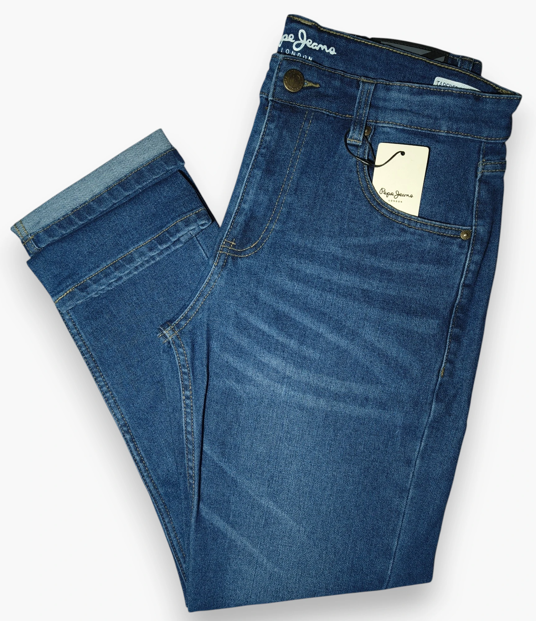 - Fit: Slim fit with a mid-rise and tapered leg
