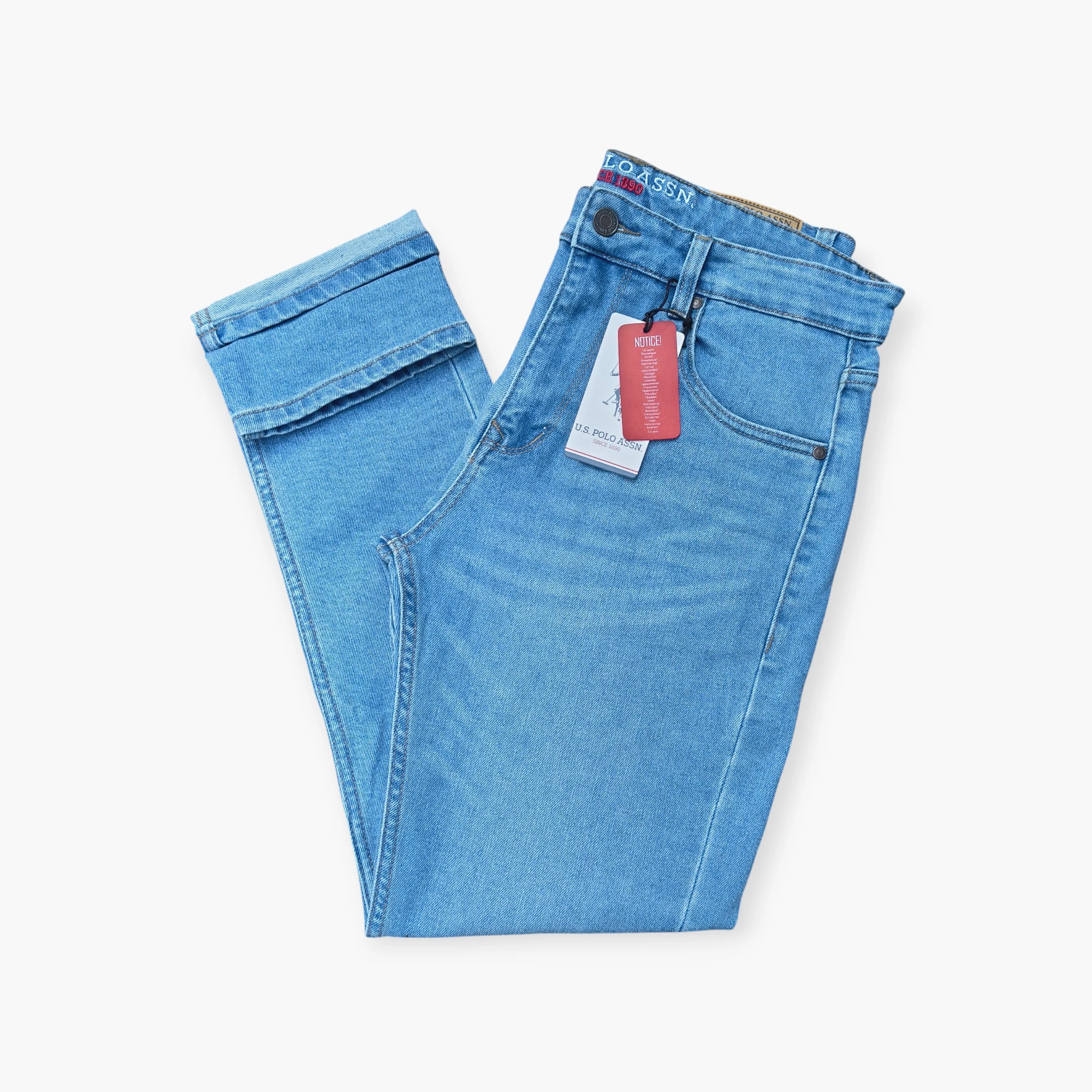 Upgrade your casual wardrobe with these stylish slim-fit light blue denim jeans. Designed for comfort and versatility, they are crafted from a high-quality cotton-spandex blend that ensures flexibility and ease of movement. The light-wash finish, along with subtle whiskering, provides a fresh and modern look that pairs well with any outfit. Perfect for casual outings, weekend wear, or an everyday smart-casual style.