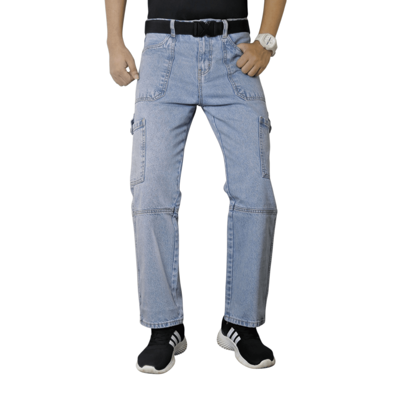 Urban Explorer Men’s Light Blue Utility Baggy Cargo Jeans